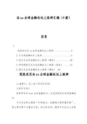 (5篇)在xx全球金融论坛上致辞汇编.docx