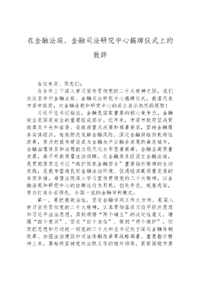 在金融法庭、金融司法研究中心揭牌仪式上的致辞.docx