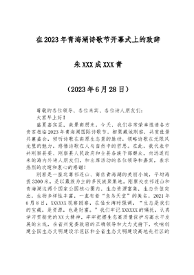在2023年青海湖诗歌节开幕式上的致辞.docx