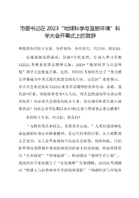 市委书记在2023“地球科学与宜居环境”科学大会开幕式上的致辞.docx
