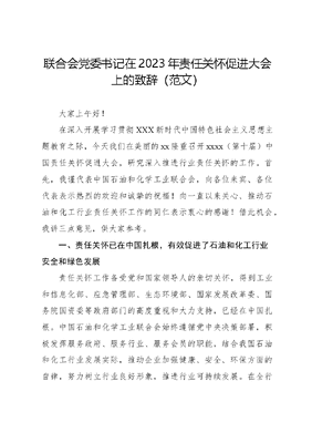 联合会党委书记在2023年责任关怀促进大会上的致辞(范文).docx