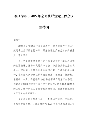 在(学校)2022年全面从严治党工作会议主持词.docx