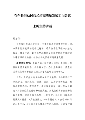 在全县推动民营经济高质量发展工作会议上的主持讲话.docx