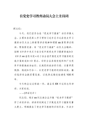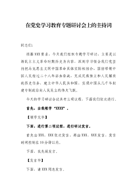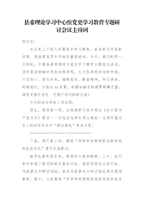 县委理论学习中心组党史学习教育专题研讨会议主持词.docx
