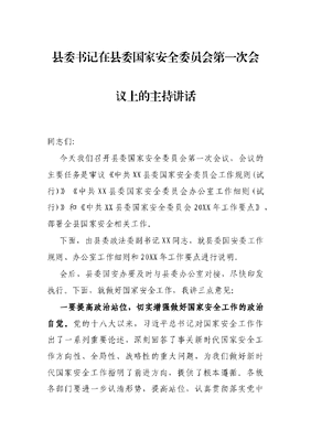 县委书记在县委国家安全委员会第一次会议上的主持讲话.docx