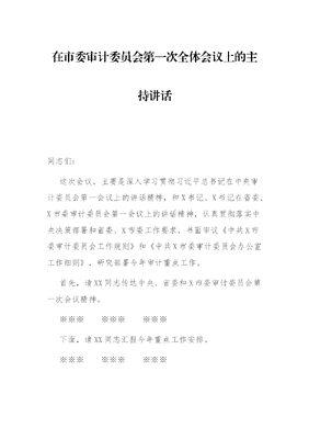 在市委审计委员会第一次全体会议上的主持讲话.docx