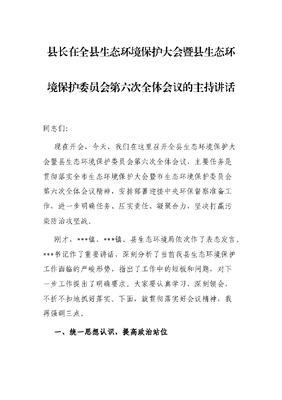 县长在全县生态环境保护大会暨县生态环境保护委员会第六次全体会议的主持讲话.docx