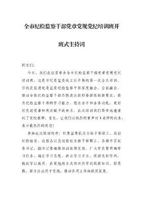 全市纪检监察干部党章党规党纪培训班开班式主持词.docx