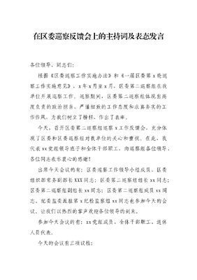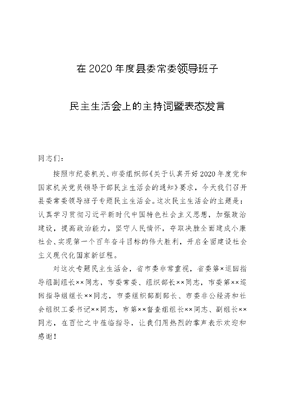 在2020年县委常委民主生活会上的主持词暨表态发言.doc