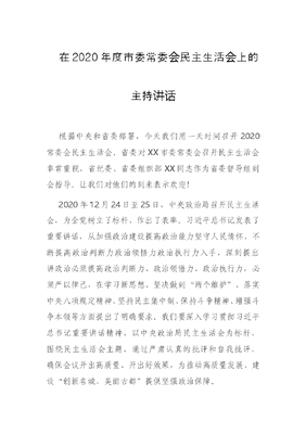 在2020年度市委常委会民主生活会上的主持讲话.doc