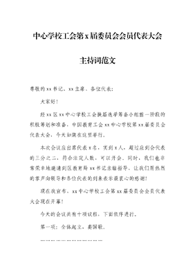 中心学校工会第x届委员会会员代表大会主持词范文.docx