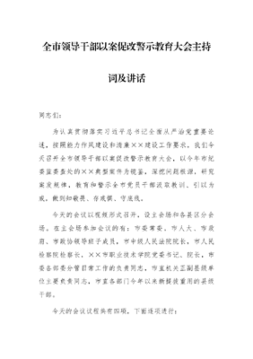 全市领导干部以案促改警示教育大会主持词及讲话.docx