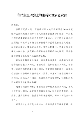 在民主生活会上的主持词暨表态发言.docx