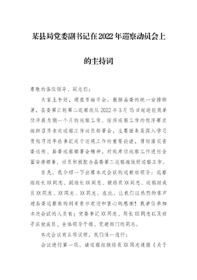 某县局党委副书记在2022年巡察动员会上的主持词.docx