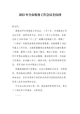 2021年全市税务工作会议主持词.docx