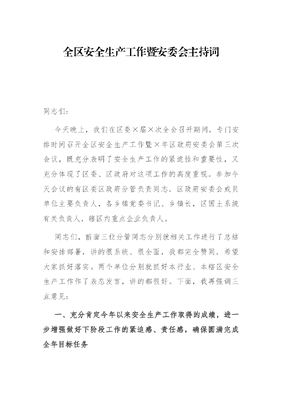 全区安全生产工作暨安委会主持词.docx