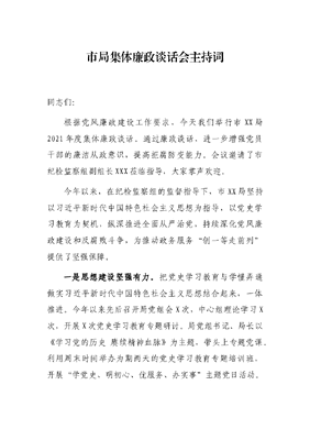市局集体廉政谈话会主持词.docx