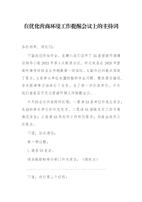 在优化营商环境工作提醒会议上的主持词.docx