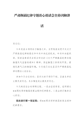 严肃换届纪律专题谈心谈话会主持词和讲话.docx