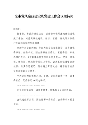 全市党风廉政建设及党建工作会议主持词.docx