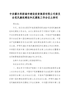 2023年党风廉政建设和反腐败工作会议主持词.doc