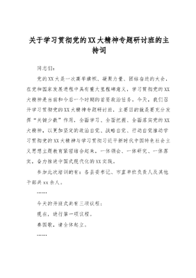 关于学习贯彻党的XX大精神专题研讨班的主持词.docx