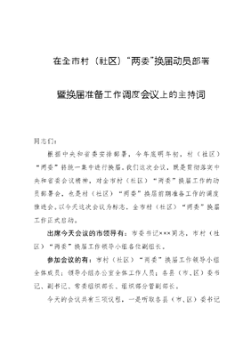 在全市村社区两委换届动员部署暨换届准备工作调度会上的主持词.doc
