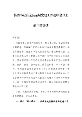 县委书记在全县基层党建工作述职会议上的主持讲话.docx