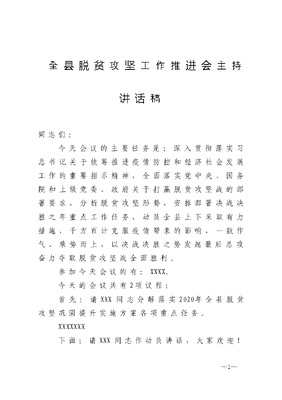 全县脱贫攻坚工作推进会主持讲话稿.docx