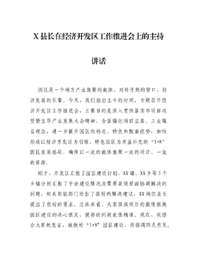 X县长在经济开发区工作推进会上的主持讲话.docx