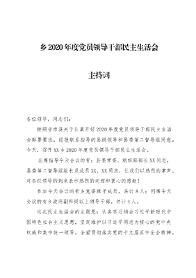 乡2020年度党员领导干部民主生活会主持词.docx