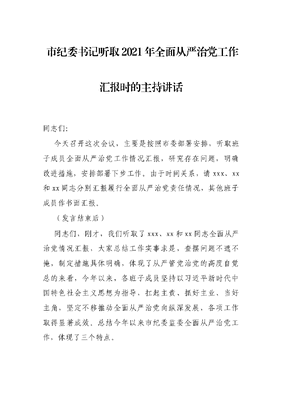 市纪委书记听取2021年全面从严治党工作汇报时的主持讲话.docx