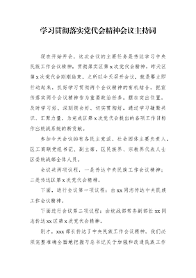 学习贯彻落实党代会精神会议主持词.docx