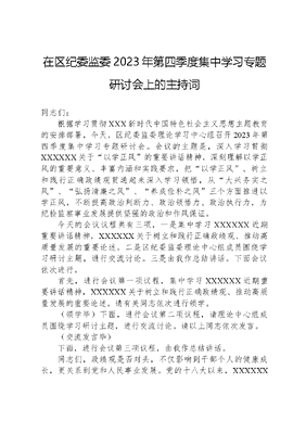 在区纪委监委2023年第四季度集中学习专题研讨会上的主持词.docx