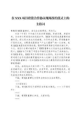 在XXX项目投资合作协议现场签约仪式上的主持词.docx