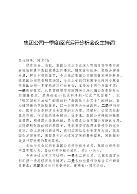 集团公司一季度经济运行分析会议主持词.docx