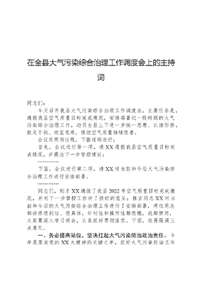 在全县大气污染综合治理工作调度会上的主持词.docx
