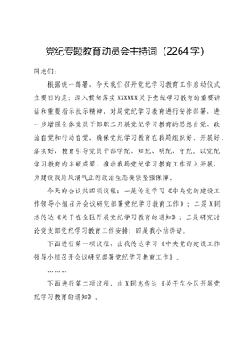 党纪专题教育动员会主持词.docx
