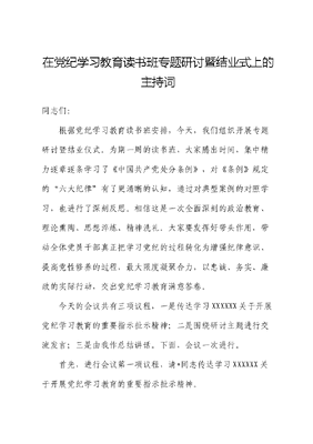 在党纪学习教育读书班专题研讨暨结业式上的主持词.docx