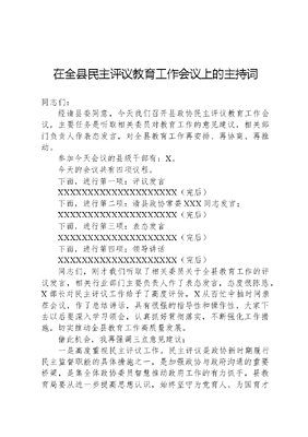 在全县民主评议教育工作会议上的主持词.docx