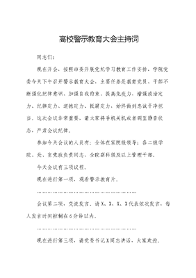 高校警示教育大会主持词.docx