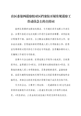 在区委第四巡察组对区档案馆开展常规巡察工作动员会上的主持词.docx