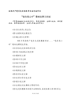 保持共产党员先进性教育活动专题节目(党在我心中主持词).doc