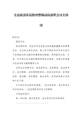 全县政法队伍教育整顿动员部署会议主持词.docx