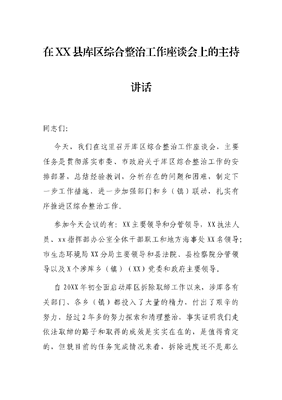 在XX县库区综合整治工作座谈会上的主持讲话.docx