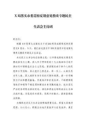 X局落实市委巡察反馈意见整改专题民主生活会主持词.docx