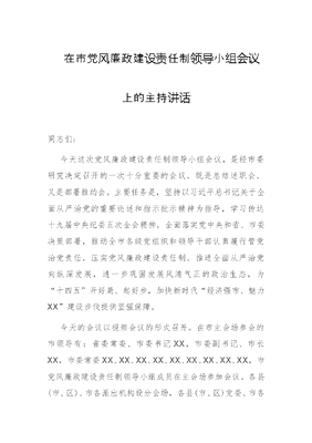 在市党风廉政建设责任制领导小组会议上的主持讲话.docx