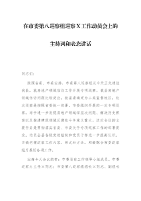 在市委第八巡察组巡察X工作动员会上的主持词和表态讲话.docx