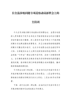 在全县涉粮问题专项巡察动员部署会上的主持词.docx