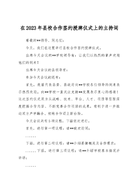 在2023年县校合作签约授牌仪式上的主持词.docx